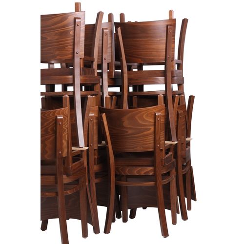 Dřevěná židle vyrobená klasickou technologií z masivního bukového dřeva. Sedák má ergonomicky tvarovanou sedací plochu. Opěrka je tvořena opěradlovou deskou z vrstvené bukové překližky. Její prohnutí zaručuje vysoký sedací komfort. Celá židle je zhotovena tradiční technologií a kombinace lepených a šroubovaných spojů garantují vysokou pevnost. Tato dřevěná židle je vhodná pro použití do restaurace nebo do jídelny, bistra a fast food.