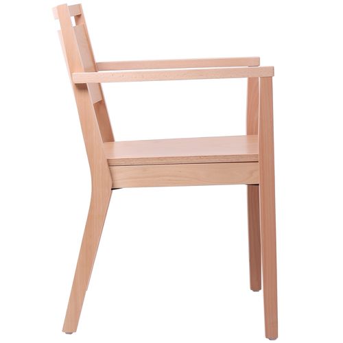 Tyto dřevěné čalouněné židle s možností stohování vynikají vysokou pevností konstrukce. Naše jídelní dřevěné židle jsou vyrobeny klasickou technologií ohýbáním masivního bukového dřeva. Sedák je tvořený dřevotřískovou deskou a opěrka je tvořena ergonomicky tvarovanými lamelkami. Jejich prohnutí zaručuje vysoký sedací komfort. Celá dřevěná židle je zhotovena tradiční technologií a použití lepených spojů garantuje vysokou pevnost. Moderní design předurčují tyto židle pro použití v gastronomii jako restaurační židle.