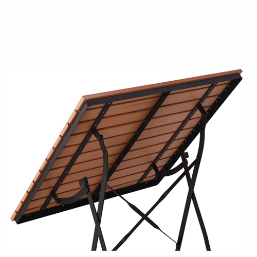 Zahradní sklapovací stoly SENJA jsou vysoce odolné venkovní stoly s univerzálním použitím. Lišty z plastu, použité místo stolové desky, jsou vyrobeny v designu TEAK Optik a dokonale imitují kresbu dřeva. Tím se stává tento zahradní stůl bezúdržbovým. Výhoda tohoto řešení je v tom, že nemusíte pravidelně natírat lišty z teakového dřeva impregnančím olejem. Kostra z žárově zinkované 4mm oceli dělá z tohoto sklapovacího venkovního stolu bezúdržbový zahradní nábytek.